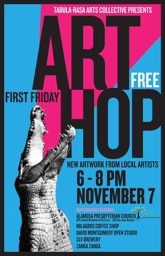 Alamosa-First-Friday-Art-Hop Promotional poster for the Alamosa First Friday Art Hop. Created with Adobe Illustrator and Photoshop. Published by davidgoe View all posts by davidgoe