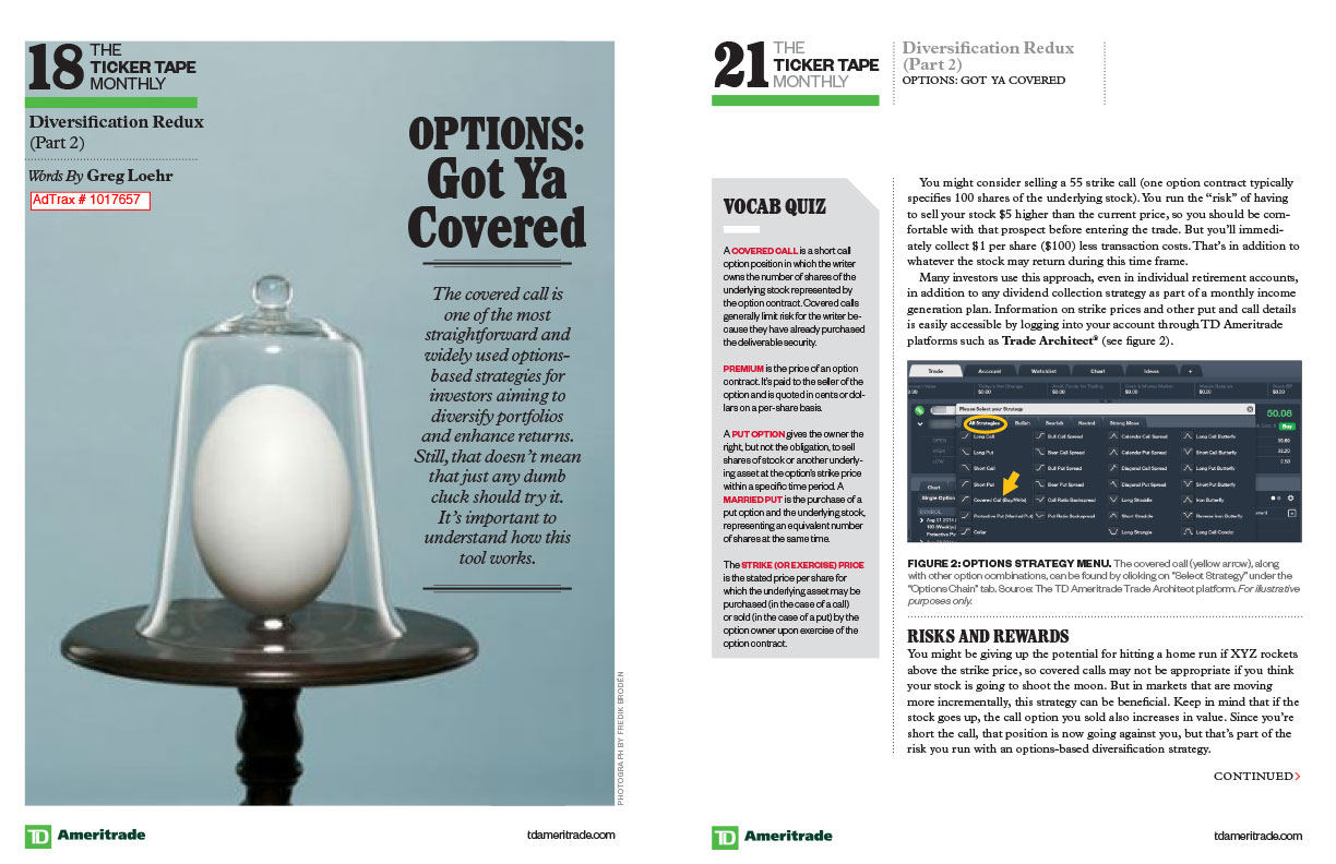 Sample layout from TD Ameritrade’s monthly newsletter “The Ticker Tape Monthly.” Created using Adobe Photoshop and InDesign.