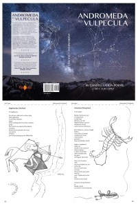 Cover and sample layout from “Andromeda to Vulpecula,” a book of constellation poems by L. Luis Lopez. Created with Adobe InDesign, Illustrator, and Photoshop.