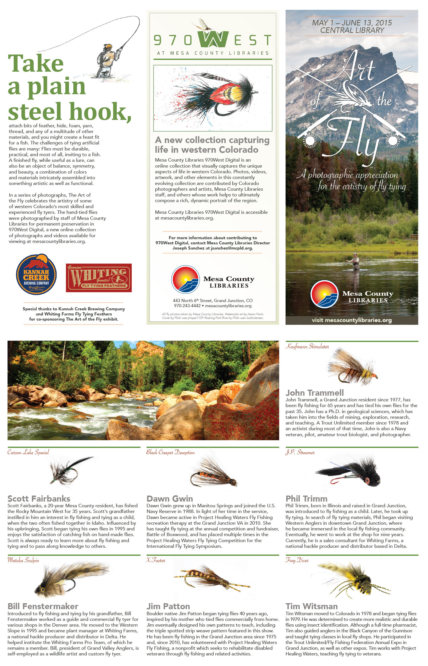 Layout for the “Art of the Fly,” a promotional brochure promoting Western Colorado fly tiers. Created with Adobe InDesign, Photoshop, and Illustrator.